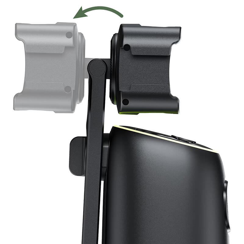 - All‑Angle Phone Clip & Adjustable Lens: Position your phone exactly how you need it. The clip rotates 360° for portrait or landscape filming and flips 180° forward or backward, while the camera lens tilts independently to ensure reliable face detection whether you’re standing, sitting, or filming in tight spaces.